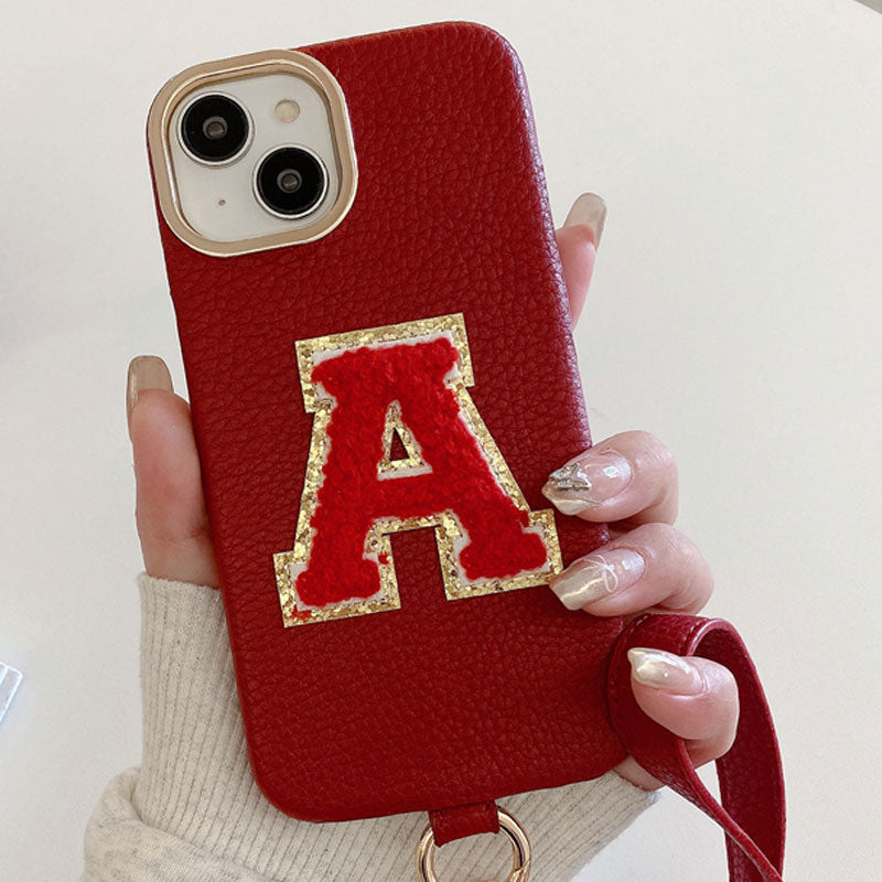 - 1 x Litchi Pattern Personalized Letter Strap Phone Case